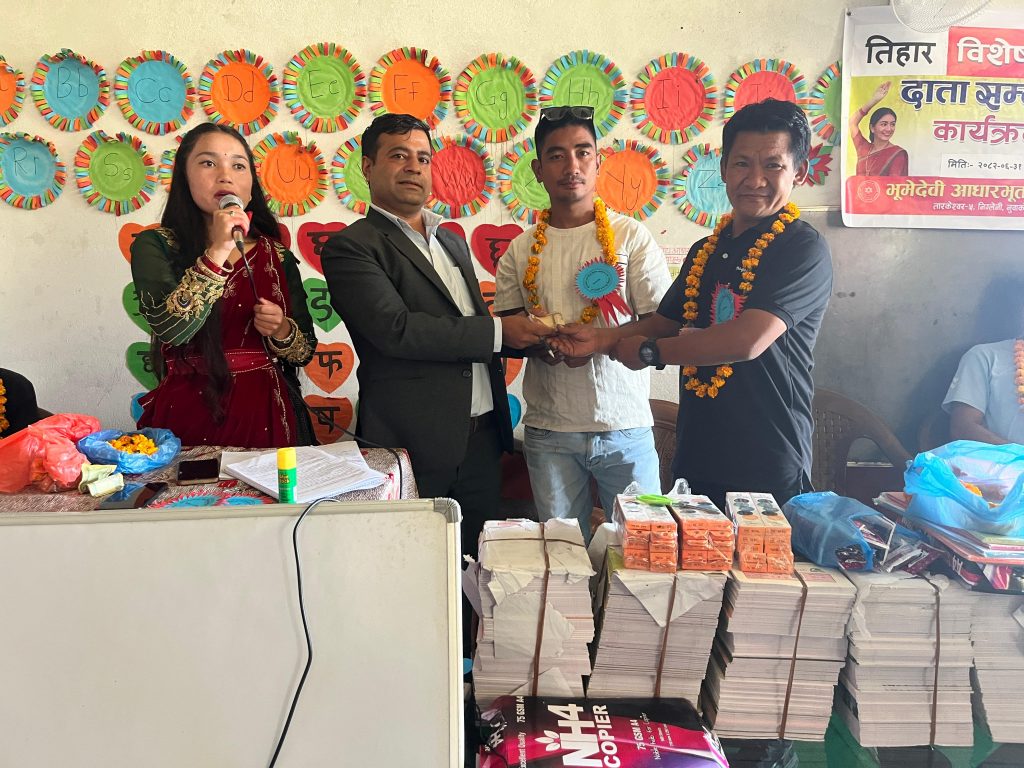 त्यस्तै कार्यक्रममा स्थानिय दिपक तामाङले विद्यालयका विद्यार्थीहरुको परिचयपत्र बनाउन १० हजार रुपैयाँ उपलब्ध गराएका छन् ।