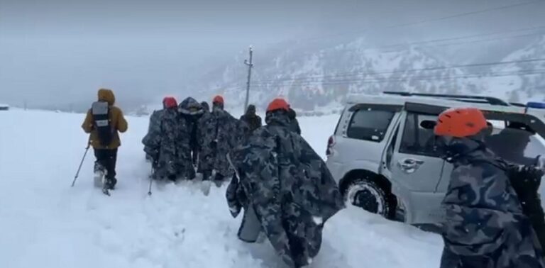 नुवाकोट । सोमबार रातीदेखि परेको हिउँका कारण मनाङलगायतका हिमाली क्षेत्रमा फसेका नागरिक तथा पर्यटकहरुलाई नेपाली सेना, सशस्त्र प्रहरी बल र नेपाल प्रहरीले संयुक्त रुपमा सुरक्षित स्थानमा स्थानान्तरण गरेका छन्।
