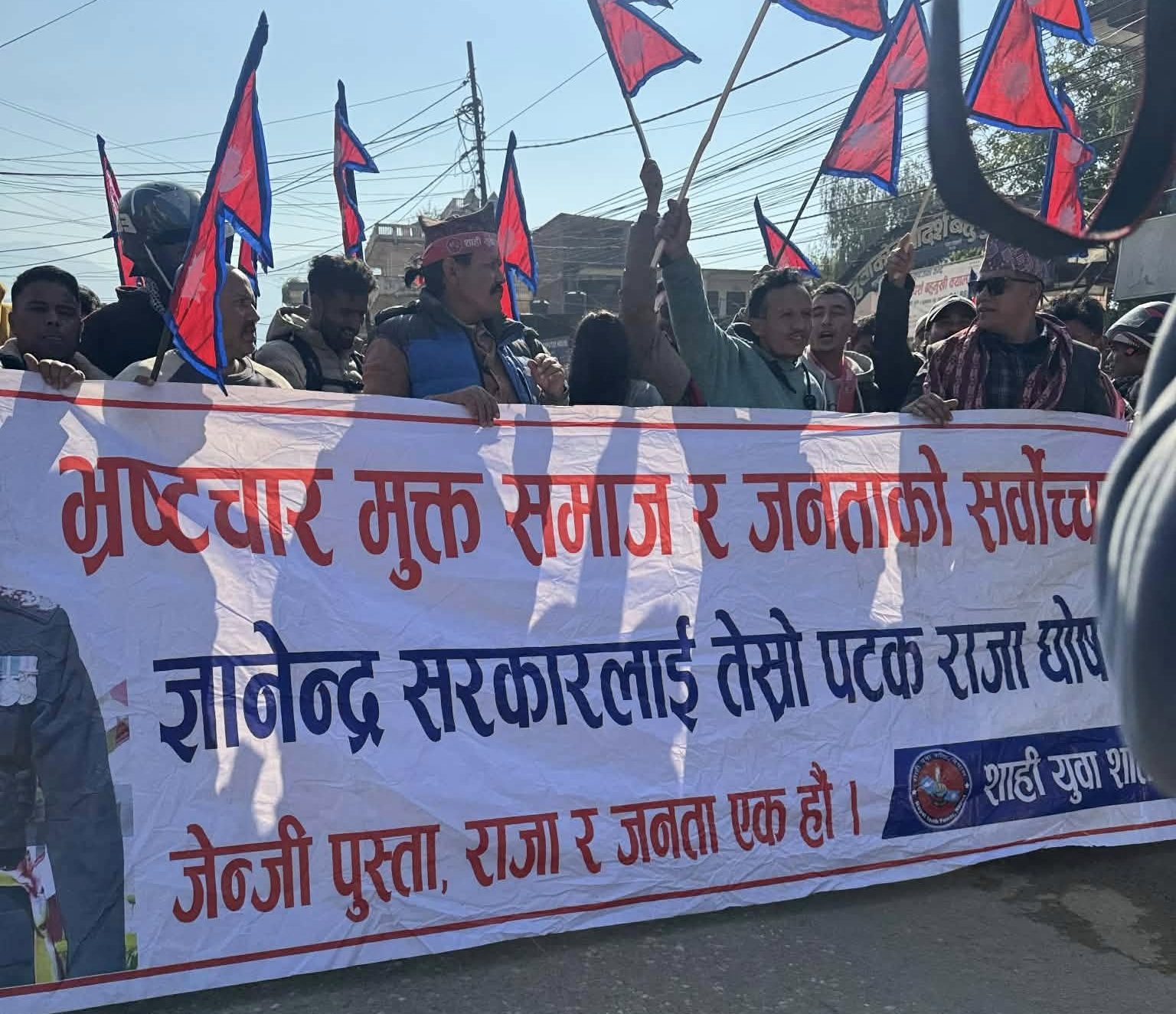 शाही युवा शक्ति नेपालले गणतान्त्रिक व्यवस्था खारेज, हाम्रो राजा हाम्रो देश, प्राण भन्दा प्यारो छ, राजतन्त्र जिन्दावाद, हिन्दु राष्ट्र कायम गर्, राजा आउ देश बचाउ। लगायतको नारासहित बट्टारबाट ¥याली समेत निकालेको थियो ।