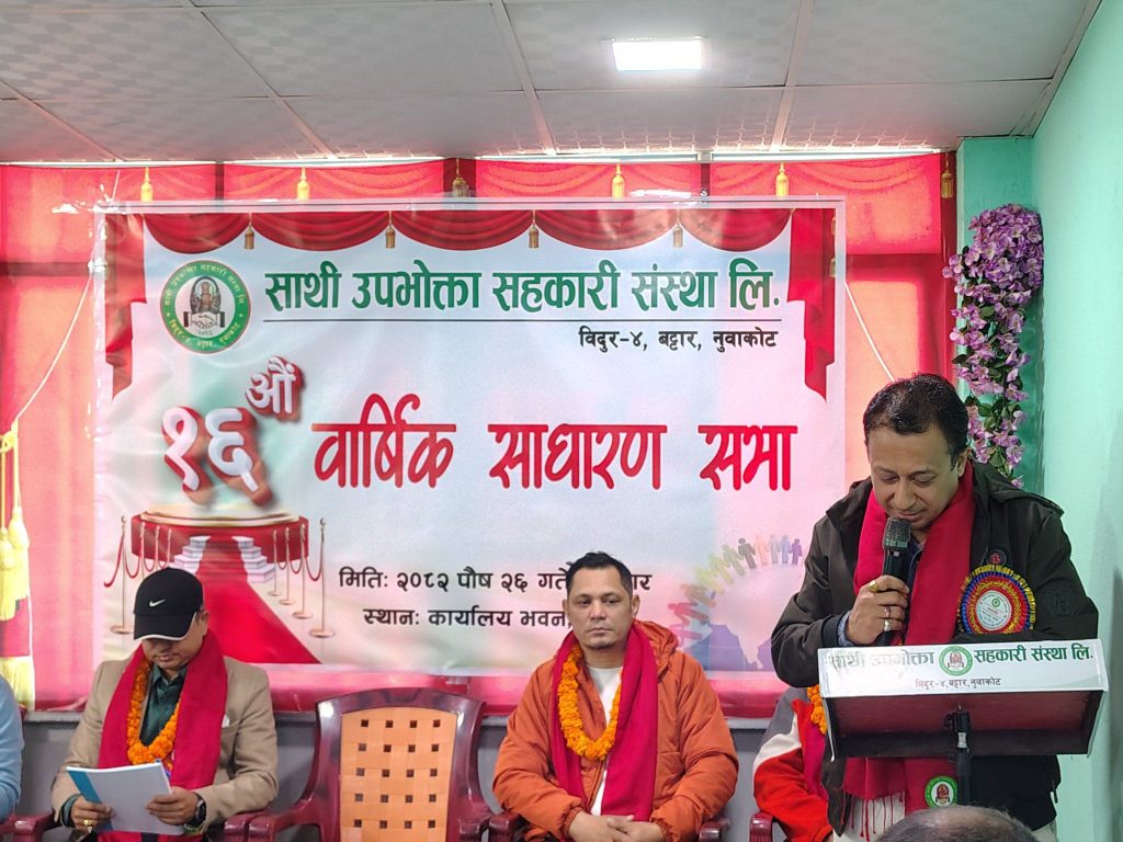 नुवाकोट । विदुर नगरपालिका वडा नम्बर ४ बट्टार हावाघरमा रहेको साथी उपभोक्ता सहकारी संस्था लिमिटेडको १६ औ वार्षिक साधारणसभा शनिवार सम्पन्न भएको छ ।