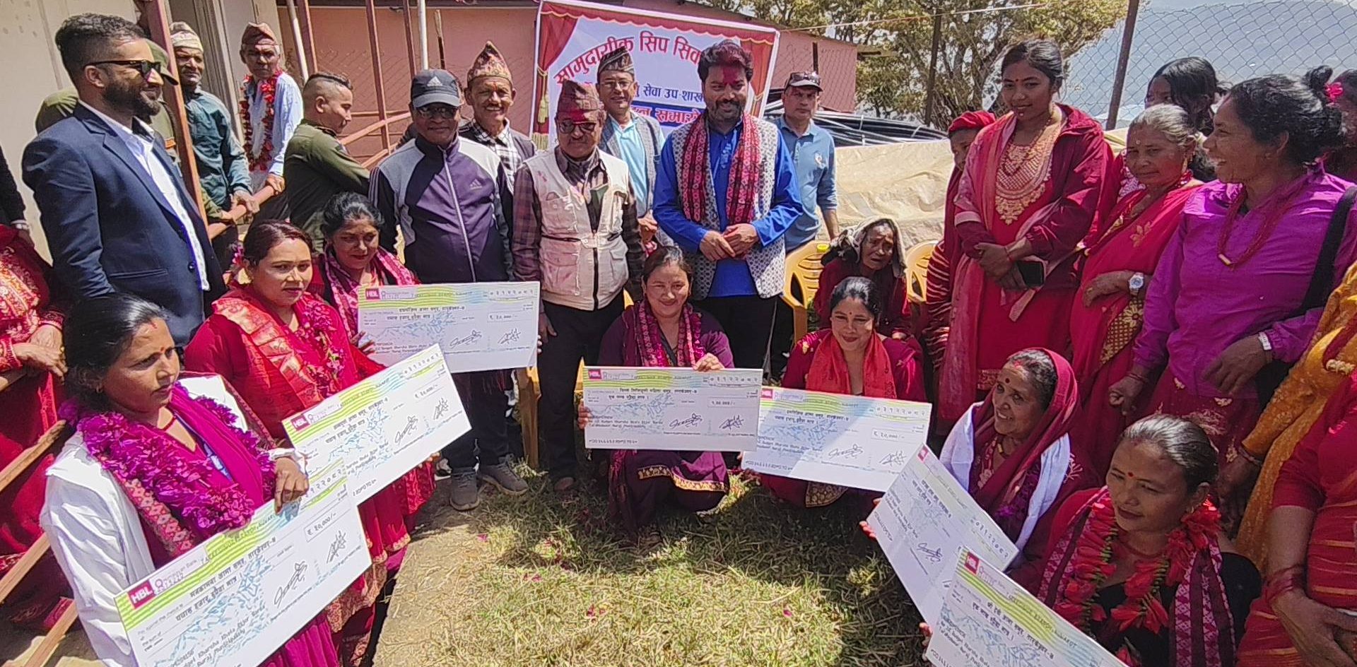 बुधवार गाउँपालिकाका अध्यक्ष शिव अधिकारीले वडा नम्बर ४ को बुधसिंहमा गाउँपालिकाले स्थापना गरेको पशु सेवा उपशाखा र सामुदायिक सीप सिकाई केन्द्रको उद्घाटन कार्यक्रममा विभिन्न आमा समुहलाई नगदसहितको चेक हस्तान्तरण गरेका हुन् ।