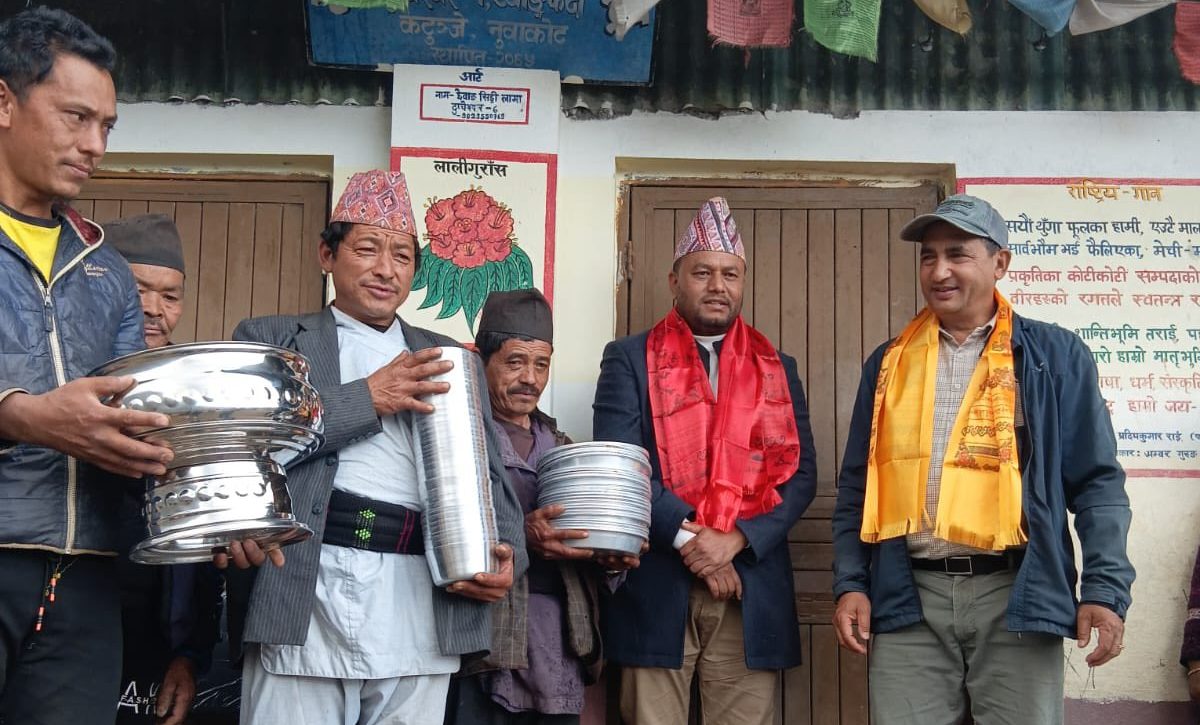 नुवाकोट । नेकपा एमाले नुवाकोट क्षेत्र नम्बर १ का संयोजक तथा समाजसेवी शुशिल खड्काले दुप्चेश्वर गाउँपालिका वडा नम्बर १ बोलुङका स्थानियहरुलाई सामुहिक प्रयोजनको लागि भाडा वितरण गरेका छन् ।