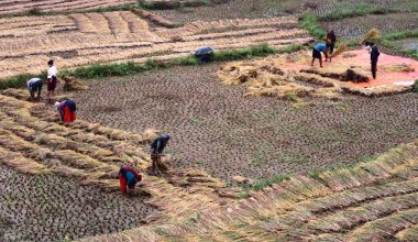 नुवाकोटमा वर्षातकै बीचमा धान भित्र्याउन किसान व्यस्त